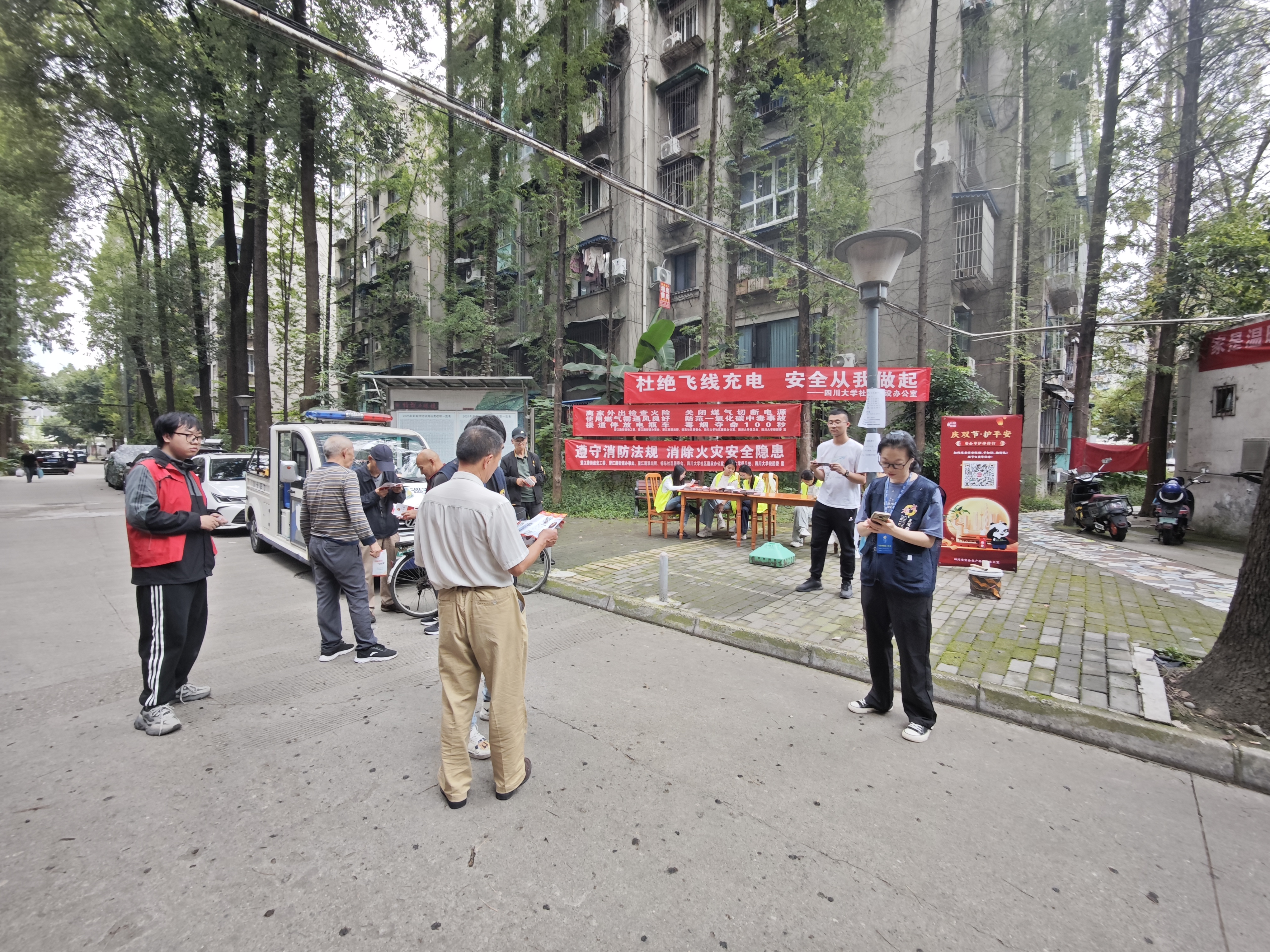 9月30日下午,四川大学社区建设办公室联合望江路街道办棕东社区、校团委、保卫处在望江校区已售房区开展“遵守消防法规,消除火灾安全隐患”主题宣传活动,面向校内居民和师生普及消防安全知识。