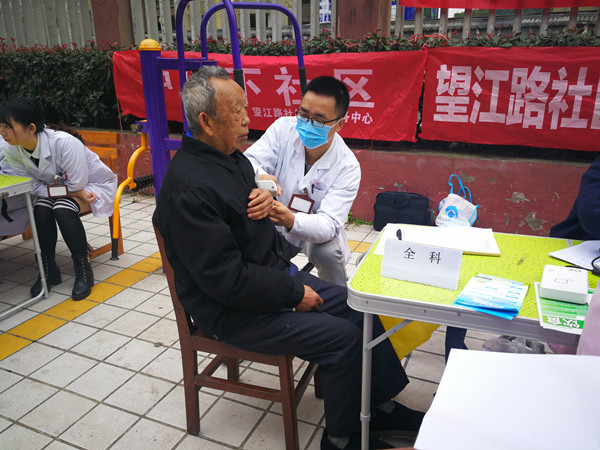 2017年11月29日上午,四川大学社区建设办公室组织川大家园社区志愿服务队联合望江路社区卫生服务中心、双楠医院在华西新村•十四宿舍小区开展“健康进社区”系列志愿服务活动。