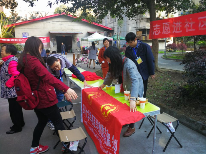 2017年3月26日上午9点,四川大学社区建设办公室组织川大家园社区志愿服务队,联合四川大学华西医学懋德志愿服务队、四川大学华西临床医学院“博士快车”实践服务团以及四川大学华西临床医学院研究生会在新北村小区开展 “健康进社区”系列志愿服务活动。