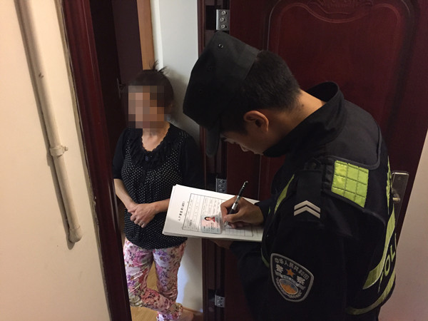 图为派出所民警对长租居民进行信息登记和采集