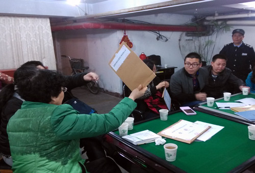 图为 房屋漏雨维修工程工作小组成员唱标