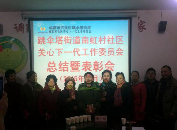 表彰会上,南虹村社区工作人员通过幻灯片对社区2015年度关工委工作进行了总结和回顾,并向优秀人员颁发了奖状,其中大学路1号小区业主委员会主任游素群获得了“南虹村社区优秀五老人员”荣誉称号。