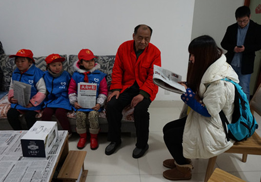 下午三点,川大家园社区志愿服务队的队员在南虹村社区工作人员的安排下,来到华西南苑小区清扫了小区院落。随后,队员们经过南虹村社区刘强老师的培训后,带领社区的7名“ 小小志愿者”来到林荫街9号居民院落中的6户老人家,为老人们送去准备好的礼物、报纸并为老人朗读新闻,表演节目,使他们快快乐乐、热热闹闹的度过元宵佳节。