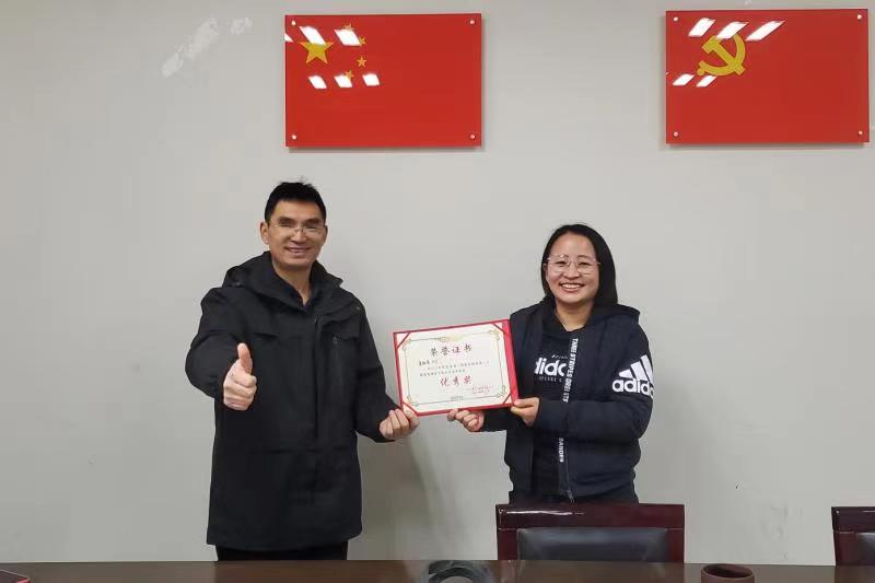 随后,支部书记严成辉同志为夏艳芳同志颁发了“2020年机关党委‘我和我的祖国’主题微党课学习展示活动优秀奖”的荣誉证书。在机关党委开展的“我和我的祖国”主题微党课学习展示活动中,夏艳芳同志代表支部讲述了“聚沙成塔,筑山万仞——我和祖国共抗疫的故事”,通过讲述抗疫点滴,点赞每一位为打赢疫情防控攻坚战贡献自己力量的中国人民,也赞美祖国的强大,感恩伟大祖国带给给大家的归属感。