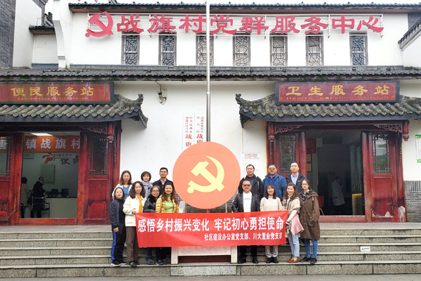 为深入贯彻党的十九届五中全会精神,深刻理解全会对我国建设社会主义现代化国家、实现中华民族伟大复兴的重大现实意义和深远历史意义,11月6日,社区建设办公室党支部、川大置业党支部一同前往郫都区唐昌镇战旗村,开展了“感悟乡村振兴变化,牢记初心勇担使命”的主题党日活动。